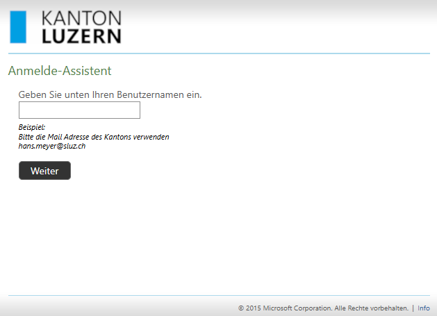 1. Man identifiziert sich online (nur) mit dem Benutzernamen (vorname_name@sluz.ch bzw. vorname.name@sluz.ch ).